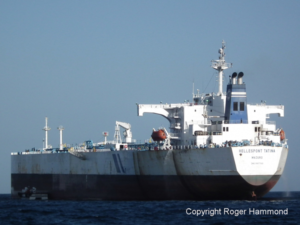 Algeciras. Tanker HELLESPONT TATINA 99/56324 arrived for dry docking at the Cerneval shipyard & we were able to photograph her in & out of the water.
