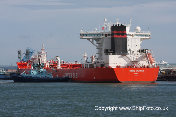 large tanker Hanne Knutsen, being berthed by the Fawley tugs. She