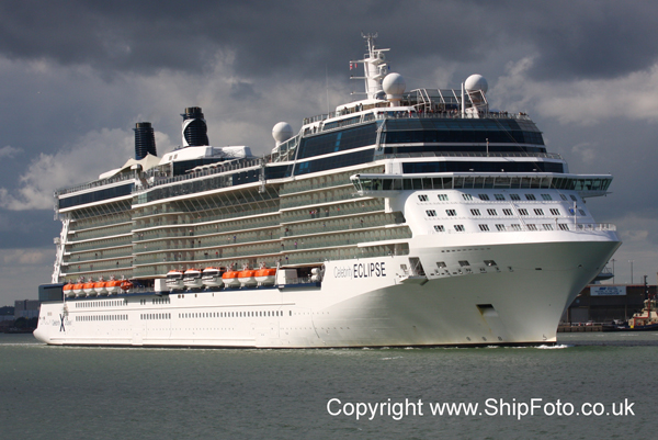 Cunard's QUEEN ELIZABETH departing at the end of our cruise.