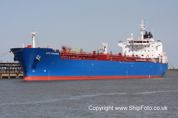 Our next sighting was the bulk carrier Mystras at Tilbury Power Station. We proceeded up river past the container ships Lars Maersk and Vantage berthed at Northfleet Hope container terminal and the small cargo ship Blue Lion at Tilbury Grain Terminal. The tanker Seychelles Pioneer was at Grays Terminal and the Offen owned CPO France and the Thun Garland were at the Vopak Terminal. Peregrine was at the Cobelfret terminal at Purfleet. Shortly after Purfleet we turned back towards Gravesend passing the newly renamed local tug GPS India towing a barge and slowly catching up the outward bound coaster Shetland Trader.