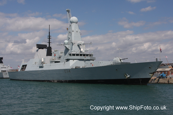 The type 45 destroyer D34 Diamond at Portsmouth.