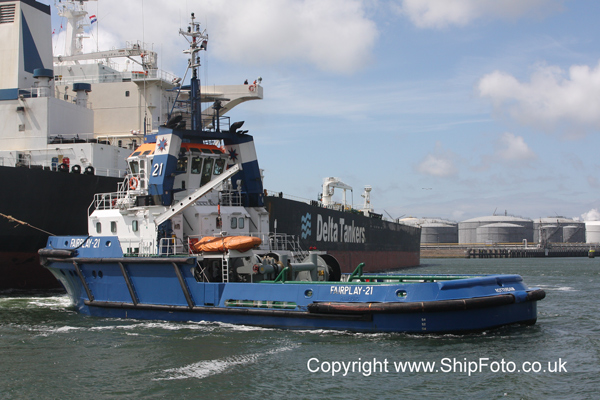 FAIRPLAY 21 assisting the DELTA PIONEER in the Caland Canal.