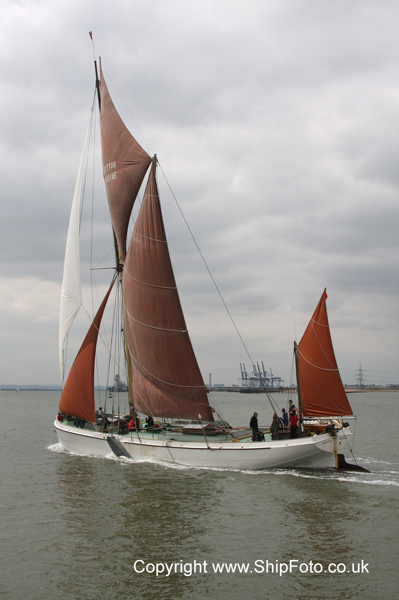 After chasing the inbound Obbola and Danica Hav, we photographed the Arklow Meadow in Southend anchorage. She was waiting for a berth at Tilbury Power Station. Over now to the Medway, taking this lull in shipping to partake of our ploughman's lunches. The Medway was a little quiet except for the Thames Sailing Barge race which was in full swing. We passed quite close to several of the competitors in full sail. Thamesport provided an opportunity to photograph the container feeder Pantonio. We took a little diversion up the River Swale to look at the various vessels laid up there and then proceeded back up the Thames. On our way back up the river we passed the outward bound TransPulp and Stenberg.