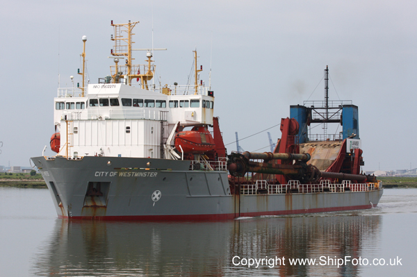 On now to the Medway which was very quiet, the only encumbent being the container feeder Enforcer at Thamesport. We proceeded up the River Swale in the direction of Ridham Dock, photographing the old tugs Nore Crest and Nore Challenger at their moorings on the river. The dredger City of Westminster bound for Ridham Dock, passed us as we departed from the Swale.