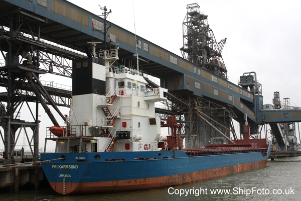 FRI KARMSUND loading at Tilbury Grain Terminal.