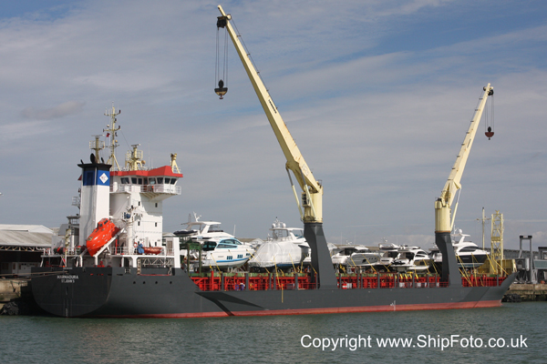 The Nagato Reefer which is one of the regular visitors bringing in produce from the Canary Islands was at 40 berth, following an accident on board where a crew member was injured by a falling lifeboat. She departed later in the day back to the Canary Islands. In the Western Docks, the Grimaldi ro-ro Eurocargo Salerno was still at 102 berth having been towed into Southampton following engine failure in the channel in October 2013. Also in the Western Docks were the Marmadura loading yachts for Palma and the coasters BS Sand and Ben Varrey.