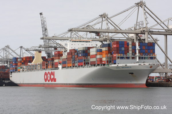 OOCL BRUSSELS, one of several large containerships in Europoort.