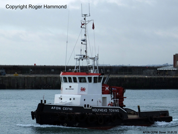 Holyhead Towing's AFON CEFNI underway in the harbour.
