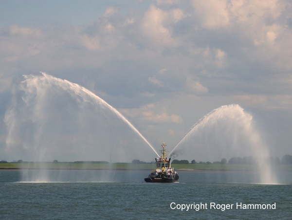 MULTRATUG 4 testing her fire fighting equipment off Terneuzen.
