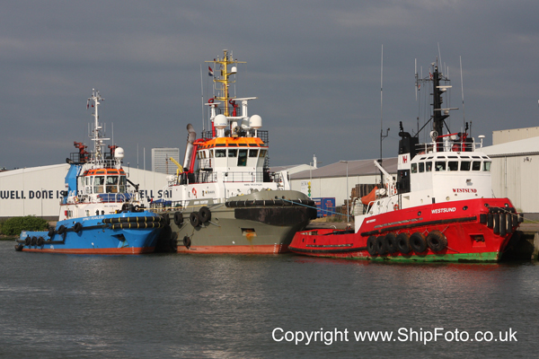 Tugs WESTSUND, UNION FIGHTER and OSPREY FEARLESS in Lekhaven.