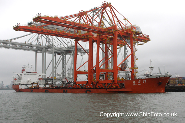 ZHEN HUA 27 berthed at Europahaven delivering new container cranes.