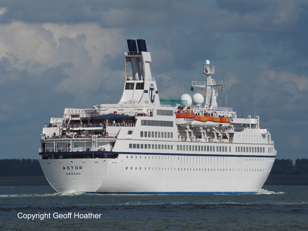 Cruise ship ASTOR arrives on the Schelde for Antwerp in Saturday afternoon sunshine.