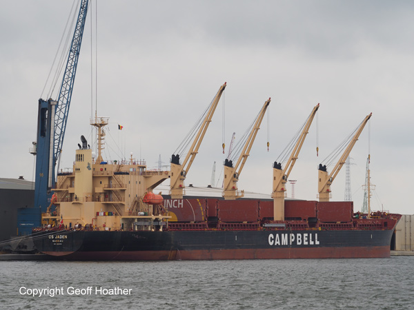 Geared bulker CS JADEN seen at Antwerp on Sunday.