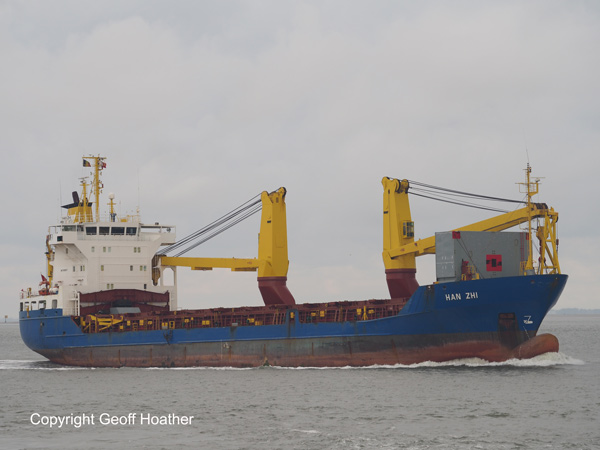 HAN ZHI inward bound on the Schelde for Antwerp on Saturday morning.