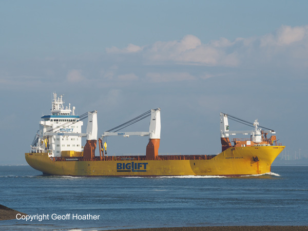 Heavy lift ship HAPPY DELTA captured inbound on Sunday morning before our departure for Antwerp.