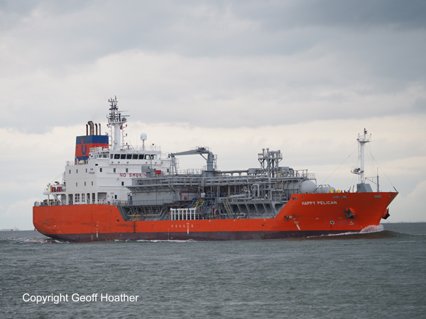 Gas tanker HAPPY PELICAN hurries inward on the Schelde following our return from Antwerp on Sunday.