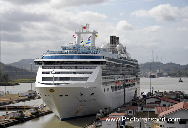ISLAND PRINCESS coming ito Miraflores Lock southbound towards the Pacific.