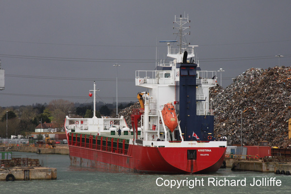 We were very lucky to see the KRISTIINA 99/4893 sailing without tugs from the KGV dock for Oxelosund. She had arrived from Tilbury. At the Container berths only the regular feeder LISA 03/7519 was alongside at SCT4E.