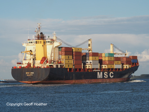 Geared containership MSC UMA inbound on Saturday evening.