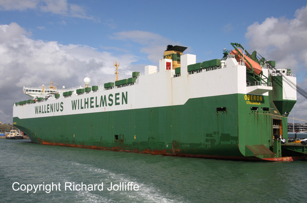 At Dock Head we saw five tugs on the berth. Another fleet of tugs, this time Kotug Smit, has come to Southampton as reported in Trippers Times. SMIT TIGER 09/484 and SD SHARK 08/486 were at berth 48 the SD SALVOR 10/490 and ZP BOXER 12/299 at berth 104W. The Wallenius Car Carrier OBERON 08/71673 was at berth 44 having arrived earlier from Zeebrugge.