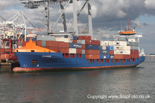 Feeder containership RANGER at the container terminal.