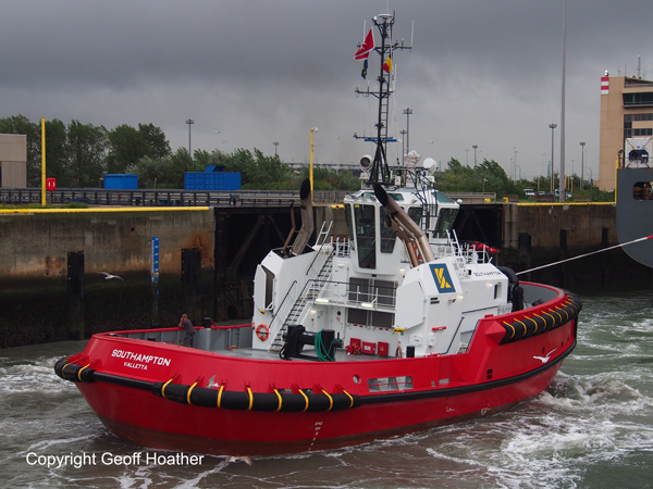 New tug SOUTHAMPTON assisting at the locks in Zeebrugge.