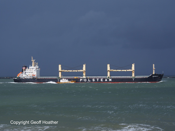 Bright sun, black clouds! Bulker SZCZECIN takes the New Waterway pilot on Monday afternoon.