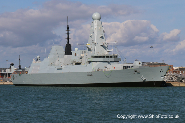HMS DARING in Portsmouth ready for her tow to Birkenhead.