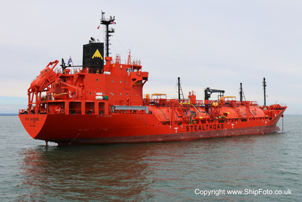 Gas tanker ECO UNIVERSE in St Helens anchorage.