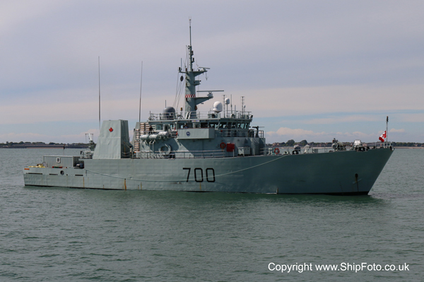 The Canadian patrol boat HMCS KINGSTON anchored off Portsmouth.
