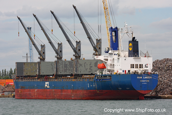 Bulk carrier IKAN LANDUK loading scrap in the Western Docks, Southampton.