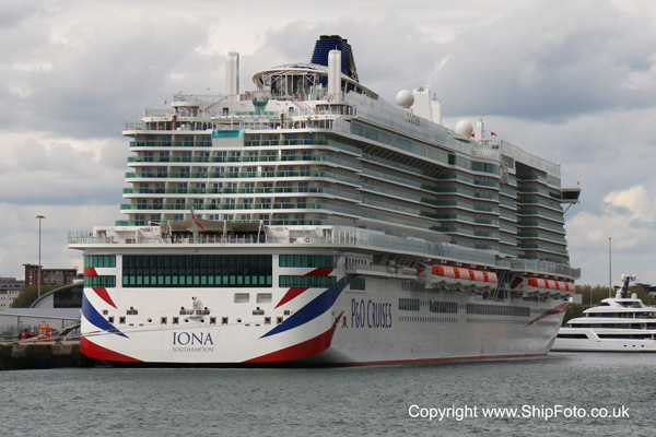 P&O's new cruise ship IONA in Ocean Dock, Southampton.