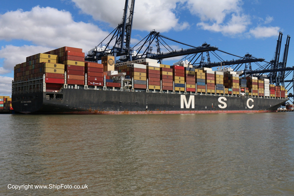 MSC MARIA SAVERIA at Felixstowe as we made out way up the River Orwell.