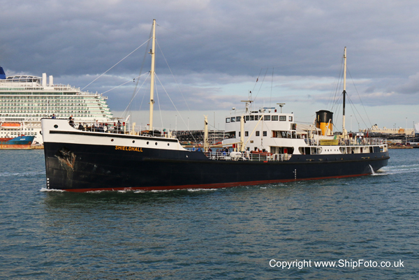 The preserved steamship SHIELDHALL in Southampton Harbour.