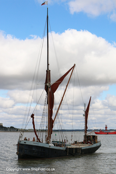 It was a bright day with sunny intervals as 47 TSS members gathered on Halfpenny Pier, Harwich, to board the sailing barge Thistle for our cruise covering Ipswich and Felixstowe. As we waited the Brointermed general cargo ship Breb Star departed from Harwich bound for La Spezia. She was assisted from her berth by the local tug Gray Test.