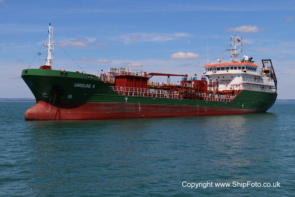 Inward bound in the Solent to take the Stolt Breland’s berth was the tanker Habip Bayrak. We passed her at close quarters just before she picked up her pilot for the voyage to Fawley. Unfortunately there was only one vessel in the St. Helen’s Anchorage, the tanker Caroline A, which had previously arrived from Antwerp and was awaiting a berth at Fawley. By the time we had photographed the Caroline A the Stolt Breland had almost caught us up, so we photographed her next as she headed out to the Nab Anchorage and subsequently to Rotterdam.