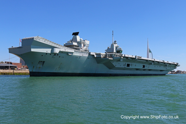 HMS PRINCE OF WALES in Portsmouth Harbour.