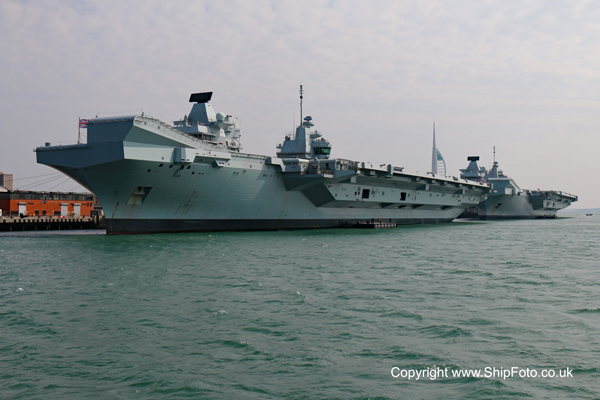 HMS PRINCE OF WALES and HMS QUEEN ELIZABETH at Portsmouth.