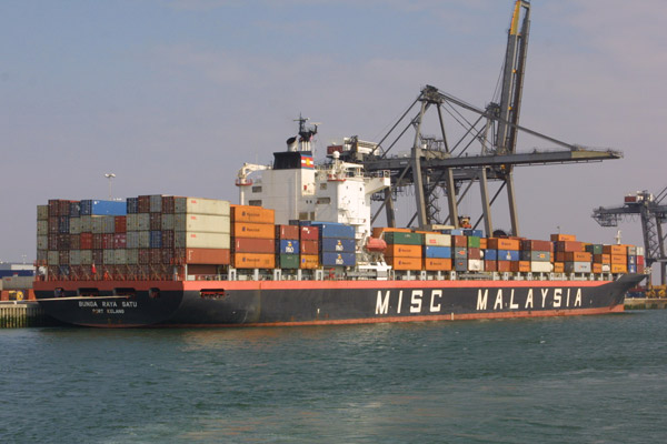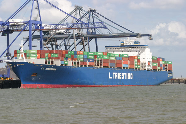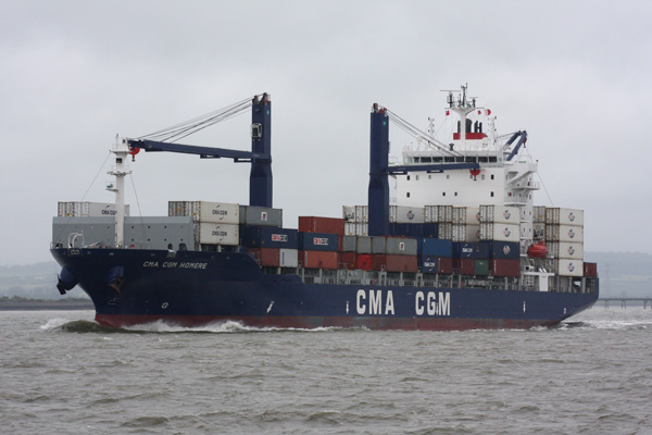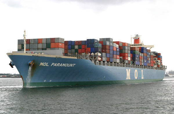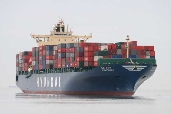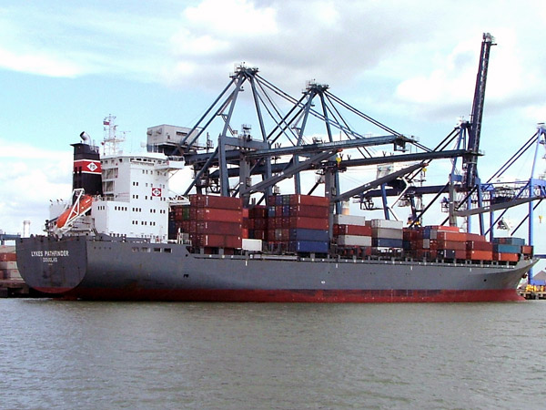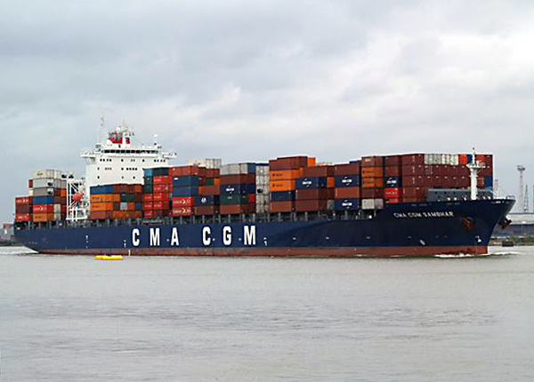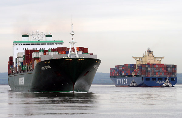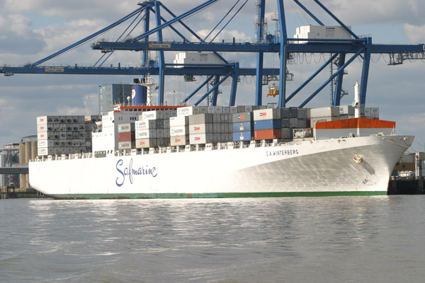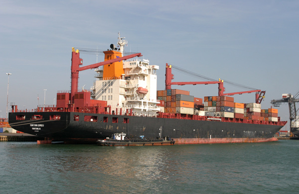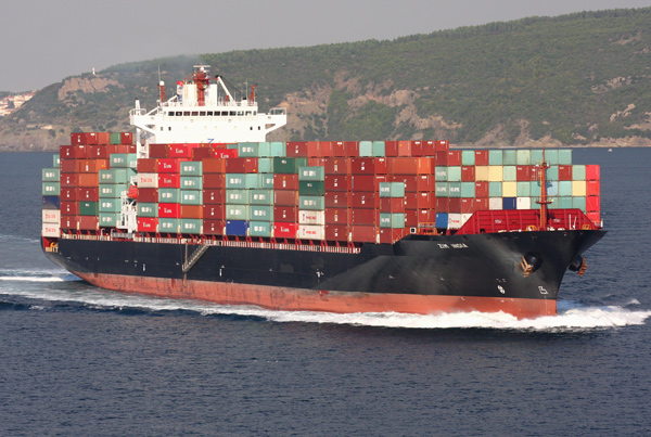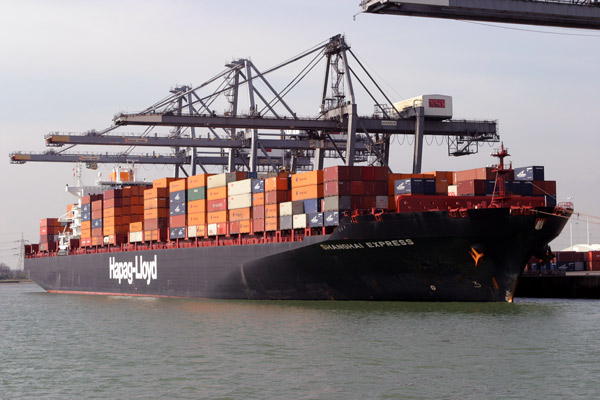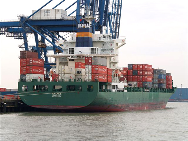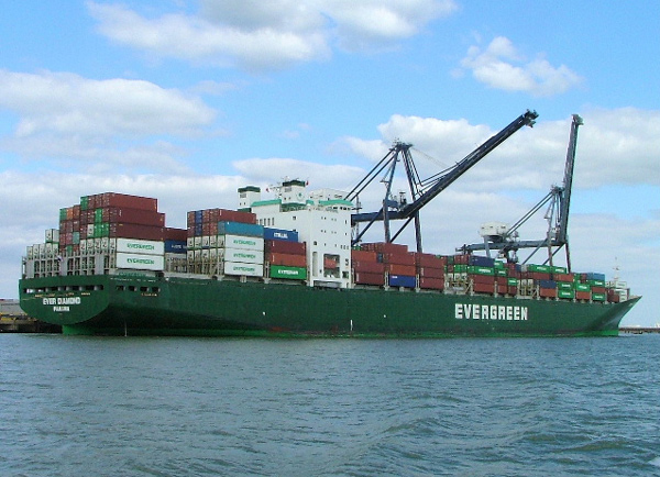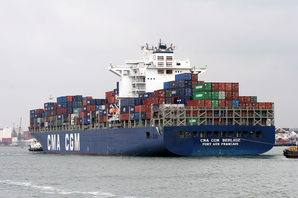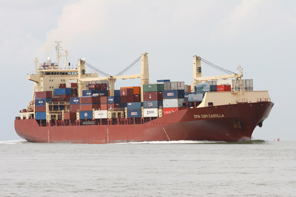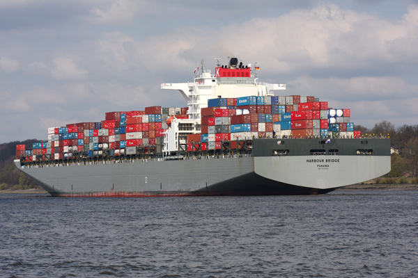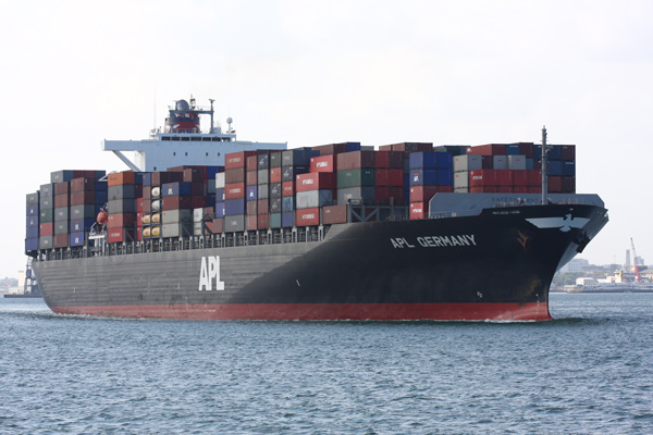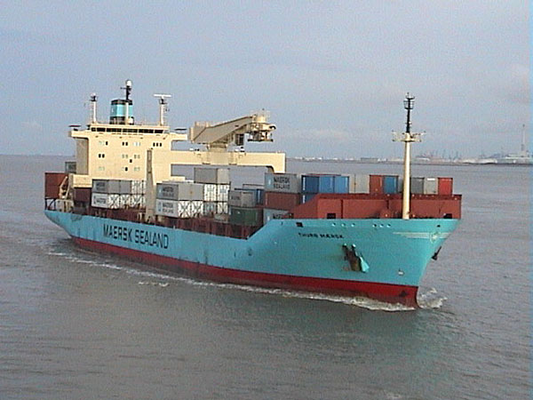 Examples of the shipping seen during the day included large container ships