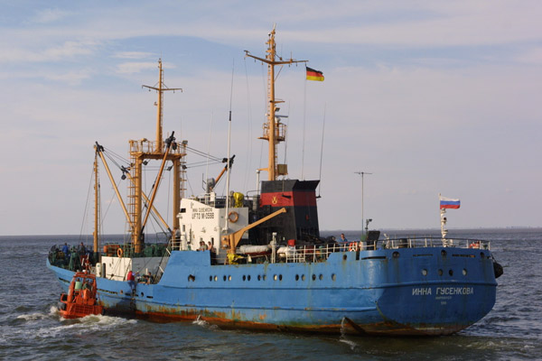 Inna Gusenkova with pilot boat
