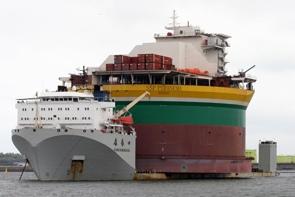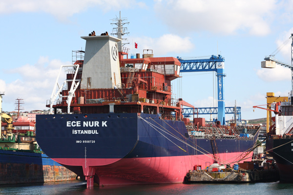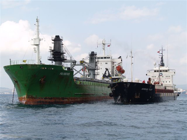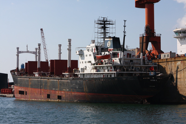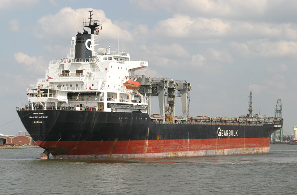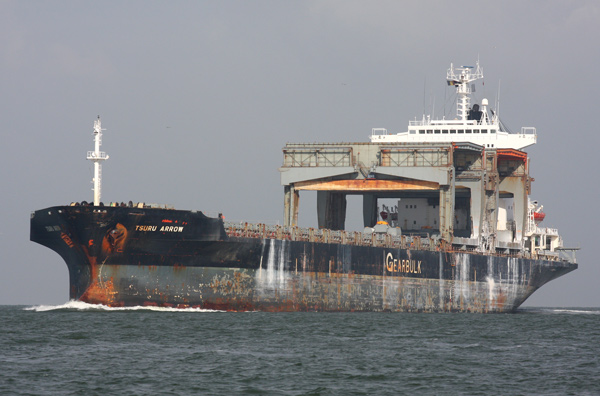 and several bulk carriers, container ships and car carriers were noted at